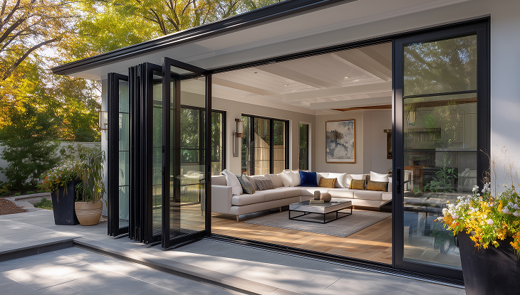 A bifold patio door consists of multiple panels, which are hinged together and fold as they slide open. Unlike traditional sliding doors that move along a track, bifold doors open by folding the panels against each other in a concertina style, creating a wide, unobstructed opening.